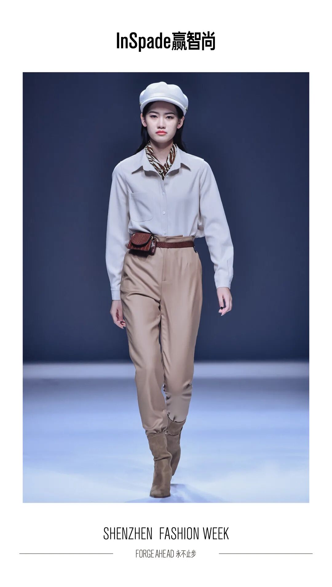 主打智能定制的InSpade赢智尚这次向观众展示了商务女装的全新打开方式。整场秀的节奏格外明快,模特们大步流星,犹如职场上步履匆匆的干练女性,尽显职场精英气场。灰色西装短裤休闲帅气;传统西装套装干练修身,丝绸质感更显优雅飘逸 。