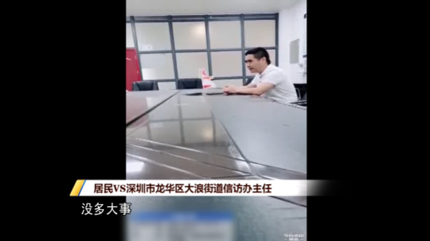 当媒体记者采访大浪街道信访办主任时,对方回应“你讲的这个事情没多大事”。有居民对他的话提出质疑,对方又称,“没多大事,我找老蔡找那个拆房子的人给你赔钱行了吧,有多大的事。”