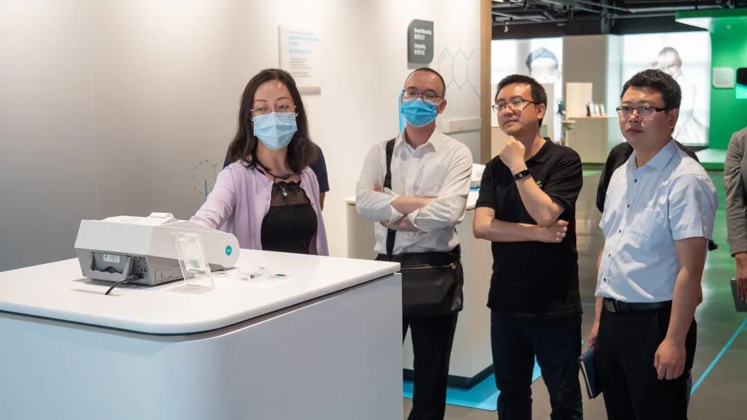 随后,博士一行参观理邦仪器产品展区,了解理邦仪器在病人监护、心电诊断、超声影像、妇幼健康、体外诊断、智慧健康等业务板块的相关高精度、高附加值产品。与此同时,博士们也亲自体验了产品检测的精准性及实时性,与理邦仪器相关业务板块负责人就产品技术创新、升级进行沟通交流。