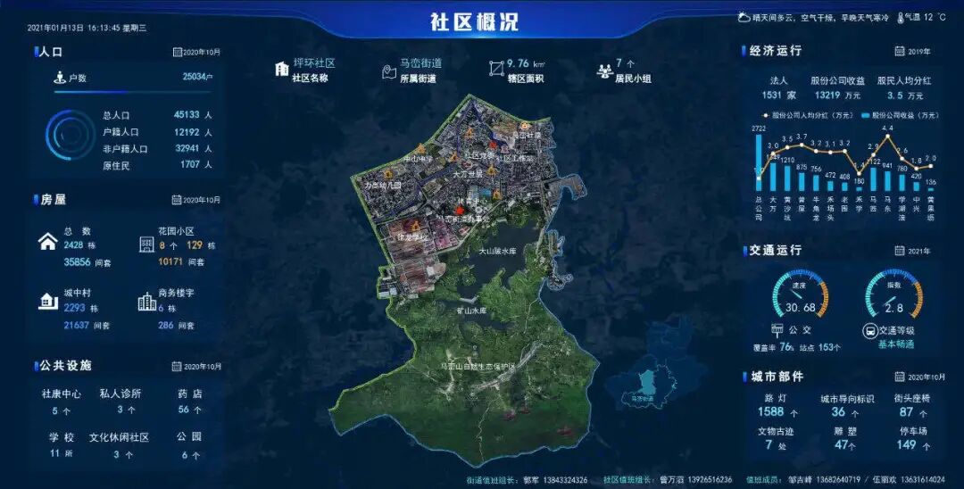 在坪环党群服务楼旁边的“坪环之芯智慧指挥中心”,大屏幕上实时显示着今日民生诉求上报数7宗,网格上报数2宗,处置9宗,结案4宗。