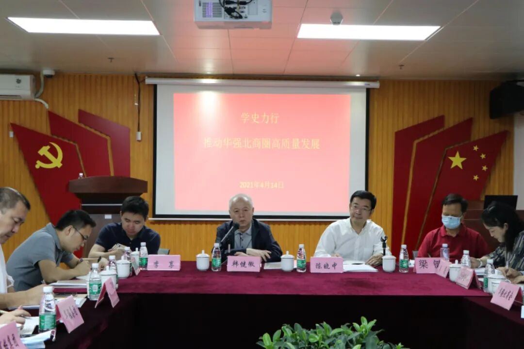 活动当天,韩健徽与华强北街道相关负责人实地调研了华强北博物馆、智方舟国际智能硬件创新中心、龙胜配件城与紫荆城食品交易中心等地。其后,一行人在华强北商圈党群服务中心举办“学史力行,推动华强北商圈高质量发展”交流座谈会,华强北街道党工委书记陈晓中,党工委副书记、办事处主任李享等领导及辖区企业代表参会。