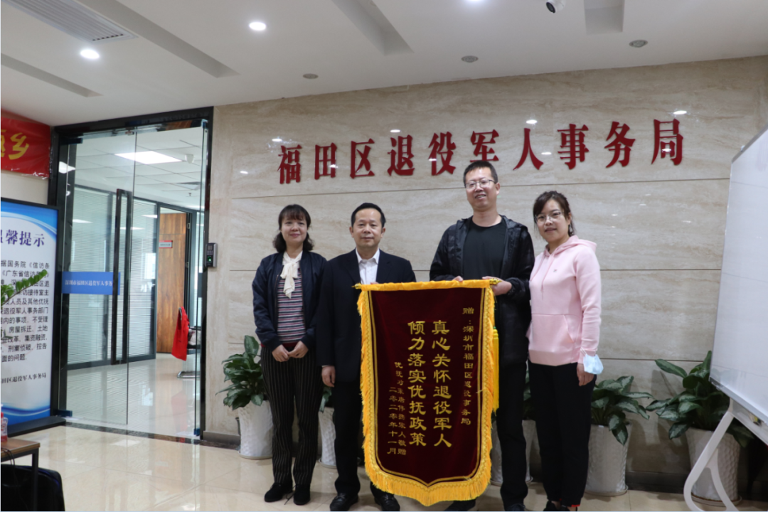 不久前,唐伟将一面印有“真心关怀退役军人,倾力落实优扶政策”的锦旗送到福田区退役军人事务局。