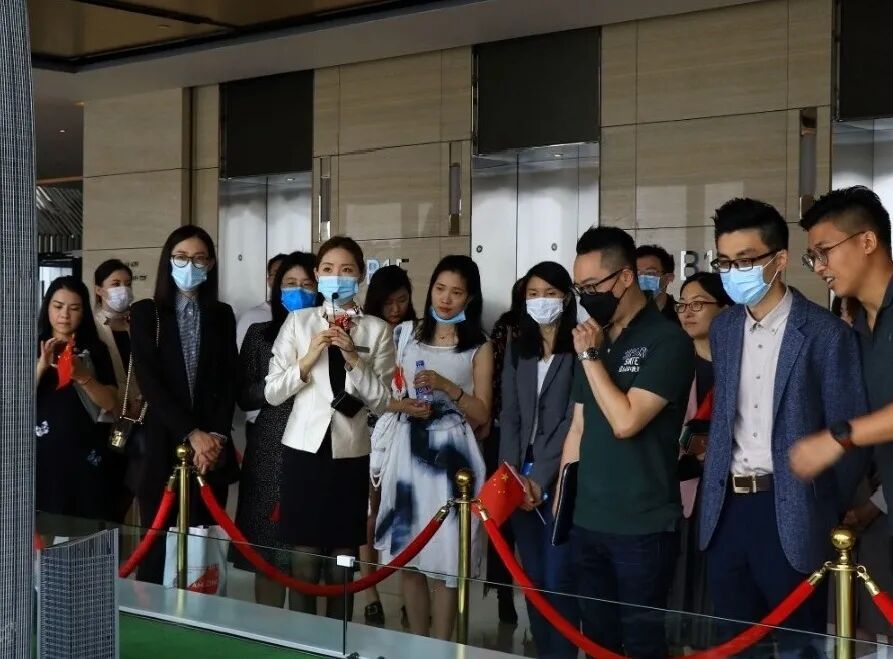 最后,人才们来到位于44楼的京基100党群服务中心,在工作人员的带领下,学习观摩了集共享商务空间、新时代大讲堂、红色走廊、云上港湾、党建书吧、休闲咖啡区、电子书法室等功能于一身的现代化党群服务中心。