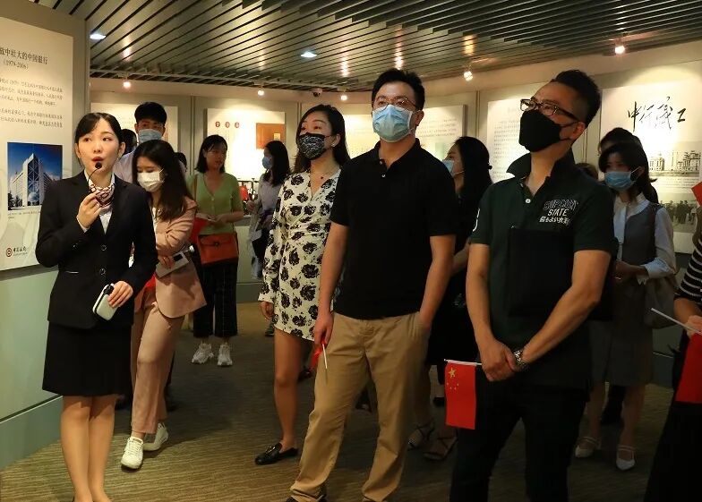 第一站,海归人才们来到位于罗湖区建设路的中国银行深圳分行行史陈列馆。在讲解员的带领下,大家学习了中国银行的百年历史,回顾了深圳中行扎根特区40年深耕金融领域、不断创新进取的辉煌历程,聆听了深圳中行未来“建设新时代全球一流银行”的战略布局。