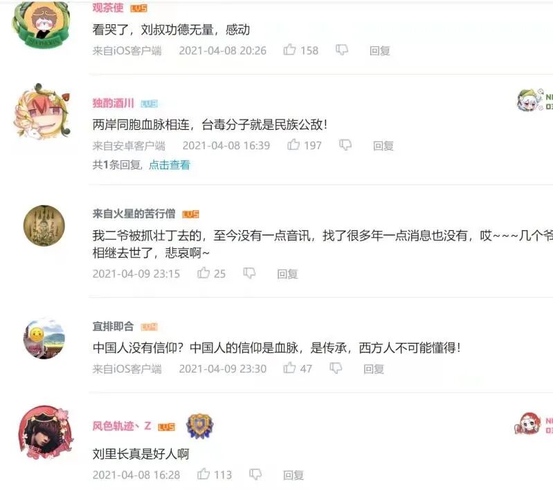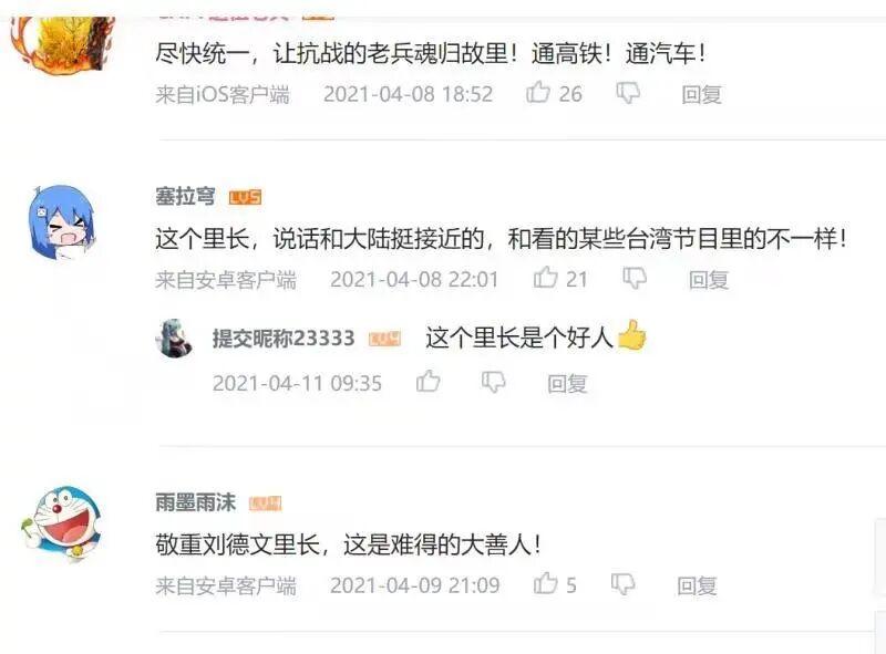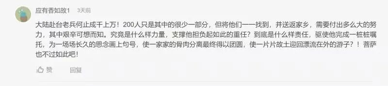 两岸网友纷纷留言,为台湾里长善行义举点赞,表达感动感谢和致敬之情,表示“善行孝道”是两岸共同传承的中华民族传统美德,期盼两岸和平发展,祖国早日统一。