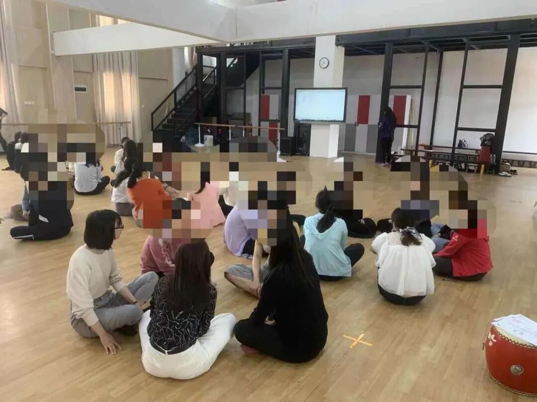 胡蓉老师通过“马兰花开、猫捉老鼠、红绿灯”等一系列小组游戏,释放老师们工作压力,同时也让老师们在游戏中感受到互相信任和支持的重要性,尤其是“幸福花开”的游戏,互相支持和帮助增加了团队凝聚力。在音乐的引导下,每位老师画出自己人生旅程曲线图,戴上眼罩在黑暗未知中摸索行走,用自己特有的方式努力寻找人生未来的梦想。最后,他们每人手持一盏明灯指引着无论遇到什么困难都坚信不疑地向前行。