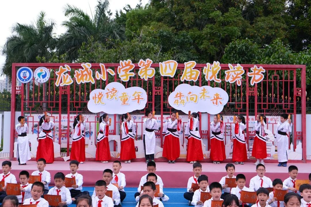 龙高(集团)龙城小学举办了第四届悦读节。围绕“悦读童年,犇向未来”这一主题,陆续开展丰富多彩的活动,绘声绘色的“经典传承”国学经典诵读,低年级“小小故事家”讲故事比赛,中高年级的课本剧大赛,生动有趣的人物模仿秀、创意书签与扇上精彩…