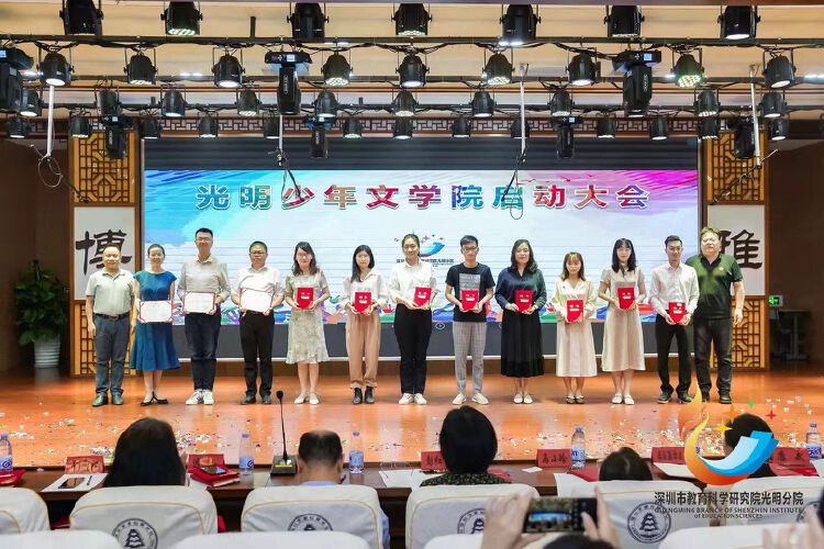 “与书为友,与写作为友,我希望将来可以成为一名优秀的作家!”随着文学小爱好者稚嫩的发言,4月23日,由光明教育局、光明教育科学研究院主办、深圳市李松蓢学校承办的光明少年文学院启动大会在李松蓢学校举行。光明少年文学院特聘导师、分院代表、期刊编辑、预备小院士等300余人参加启动仪式。