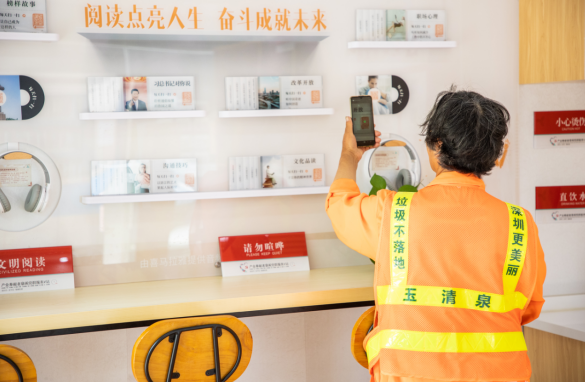 考虑到灵活就业人员往往精神压力较大、易焦虑,歇脚屋里放置了各类报刊杂志、多种正能量书籍,墙上张贴了有声读物,手机扫码一键获取,操作简单,带上耳机即可静静聆听那些鼓舞人心的故事,提供了多种自我解压、情绪舒缓途径。