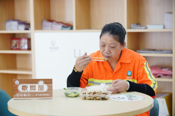 歇脚屋配备了桌椅(沙发)、微波炉、饮水机、消毒液、洗手液、洗洁精、纸巾、免费WIFI等,吹吹舒适的空调、安静享受用餐时间、合上眼睛小憩片刻……只要你走进来,随你感受美好安静时光。