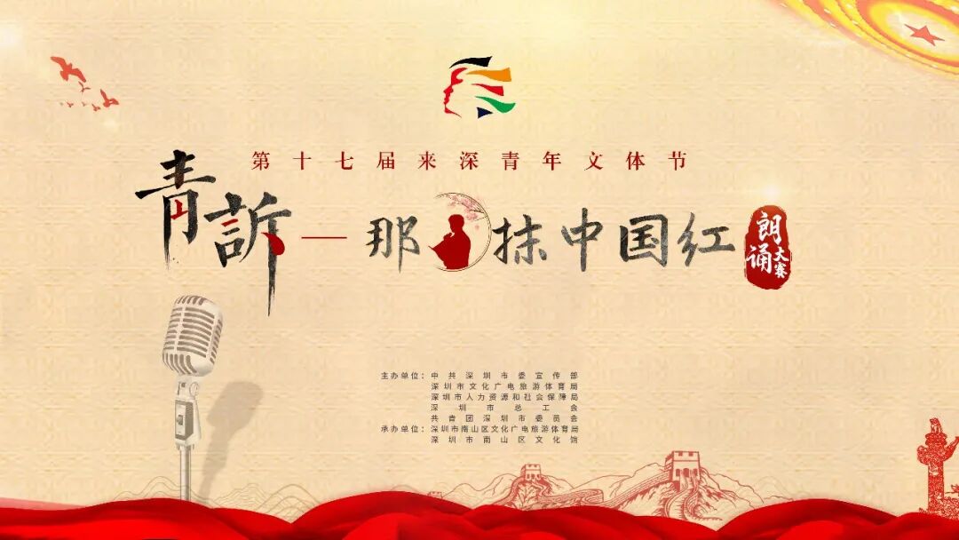 2021年是中国共产党百年华诞。百年征程,波澜壮阔;百年初心,历久弥坚。深圳作为改革开放先行示范区,汇聚了来自祖国各地的年青一代,他们风华正茂,敢拼敢闯,是这座城市的开拓者、建设者、奉献者。深圳市第十七届来深青工文体节“青诉——那一抹中国红”朗诵大赛正式启动啦!
