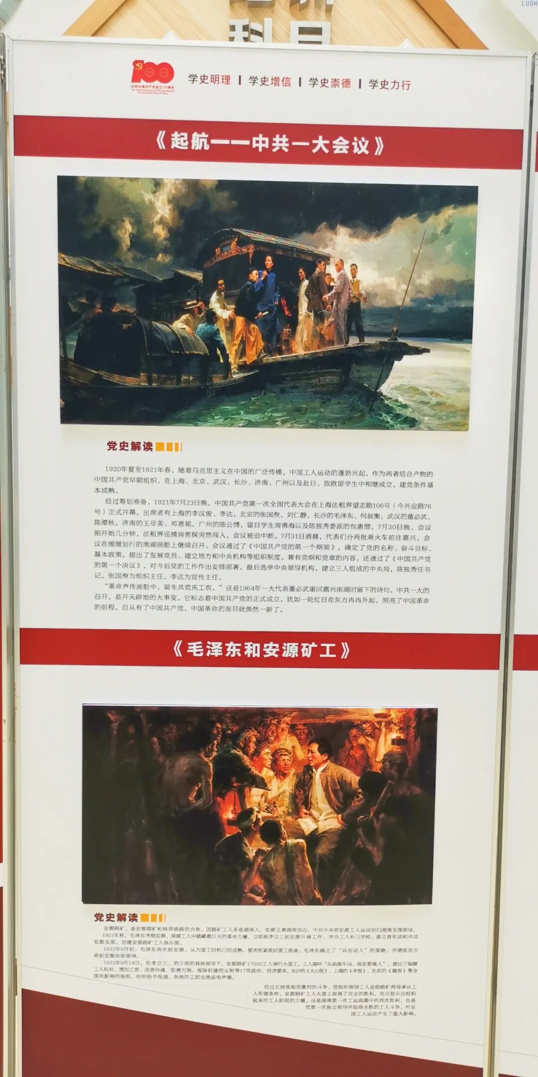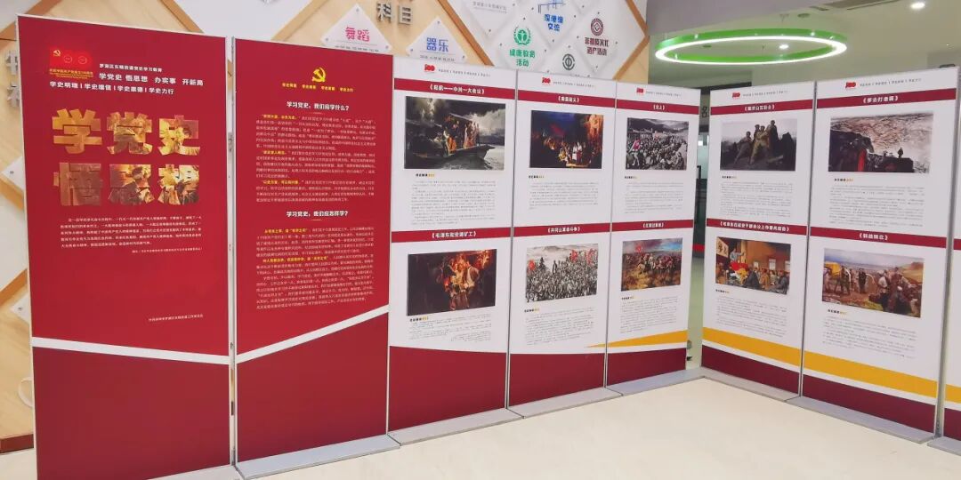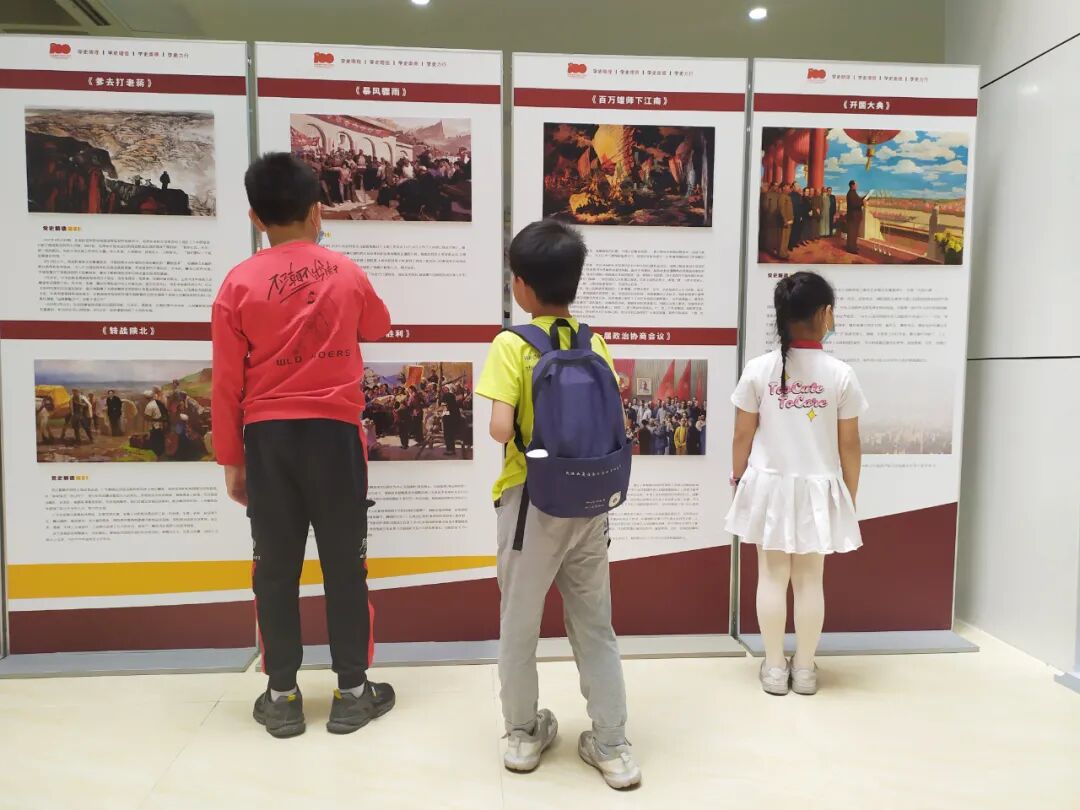 从中共一大的爱国主义精神孕育伟大政党,到南昌起义凝聚革命力量;从新中国成立初期百废待兴、千疮百孔到脱贫攻坚取得全面胜利,百年党史,百千故事,每个篇章都是英雄先烈们谱写的赞歌。丰富的展览吸引了不少青少年驻足观看,工作人员也在一旁充当“讲解员”,中心老师也积极组织学员集体观看学习, 一同了解党的光辉历史、感悟党的初心使命,传承红色基因。