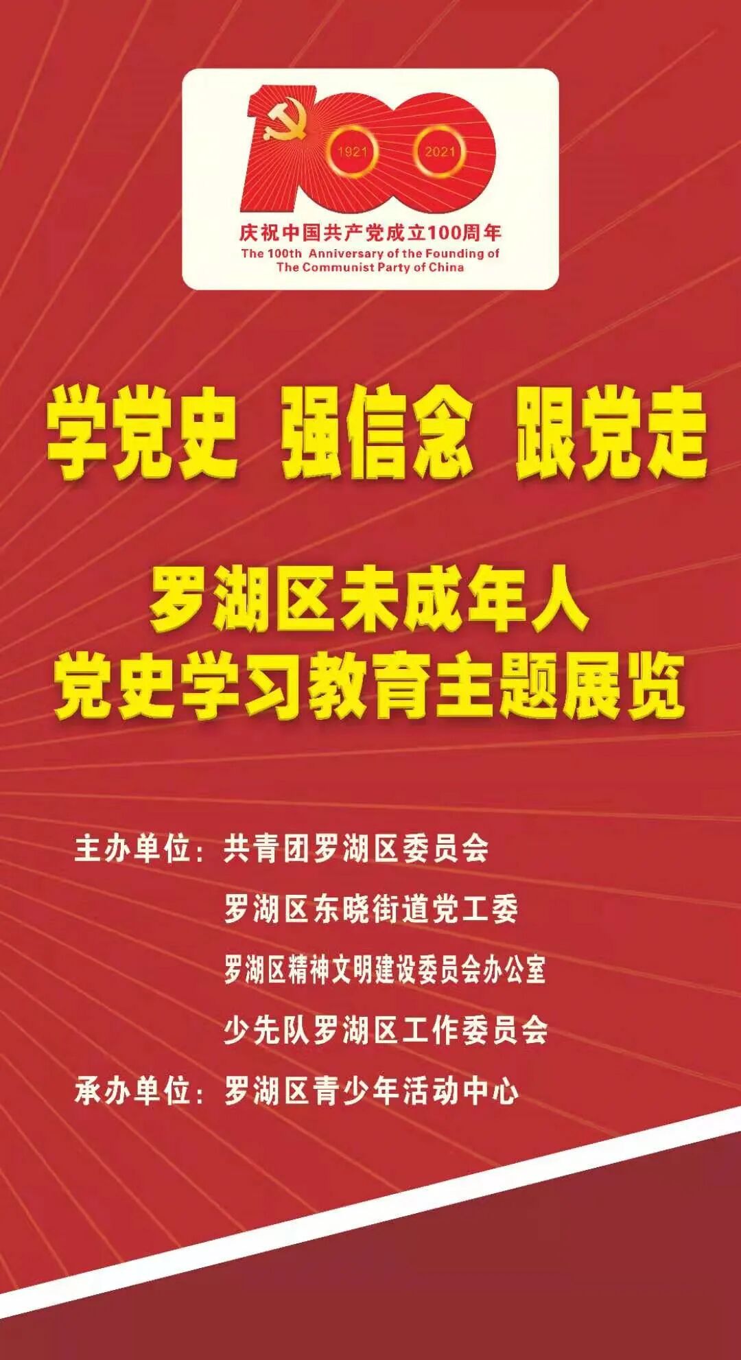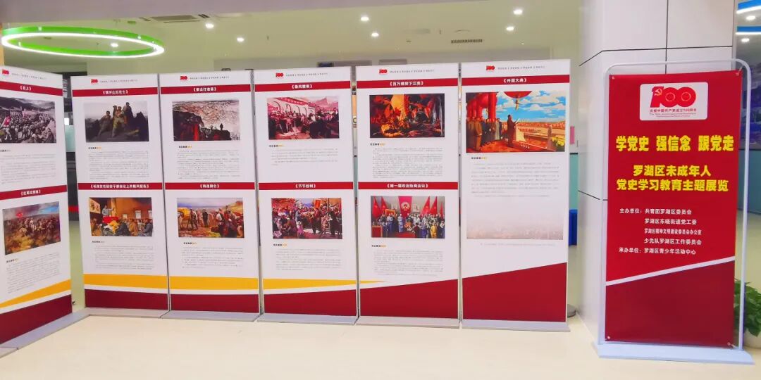 为扎实推进党史学习教育,引导广大青少年深入了解党的百年奋斗史,坚定理想信念、树立担当意识,厚植爱党爱国爱社会主义的情怀,近日,由罗湖团区委、东晓街道党工委、罗湖区文明办主办,罗湖区青少年活动中心承办的“学党史、强信念、跟党走”罗湖区未成年人党史学习教育主题展览在罗湖区青少年活动中心大厅展出。
