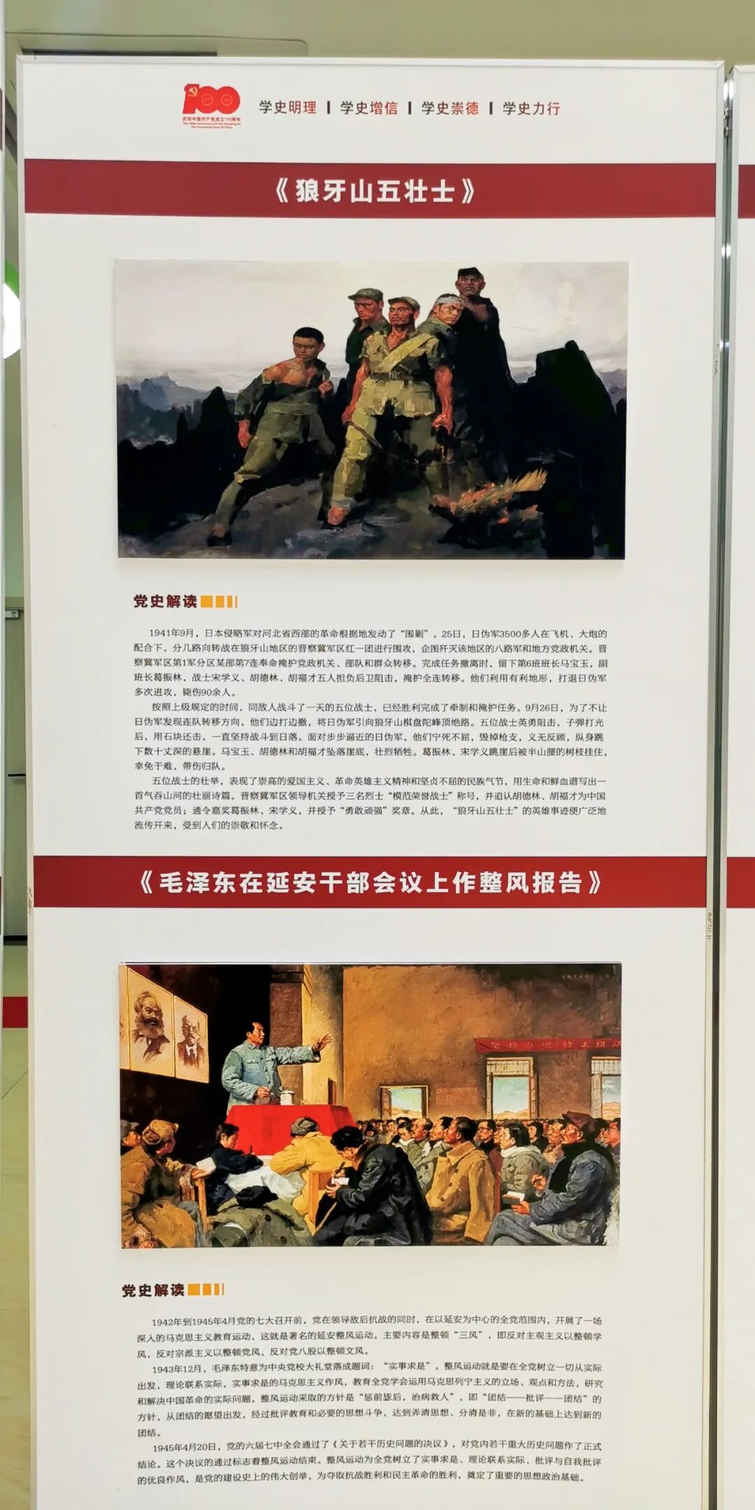 展览以美术经典画作为主,共有8组15幅作品,以革命烈士、英雄人物、重点战役等红色故事贯穿历史轨迹,呈现中国共产党走过的百年征程。
