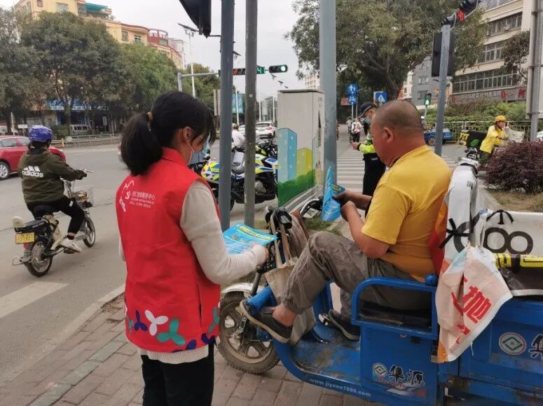 ✔ 志愿者在重点路口劝导行人、非机动车不闯红灯、不占机动车道,帮助有需要的市民过马路,并提供有关咨询服务。