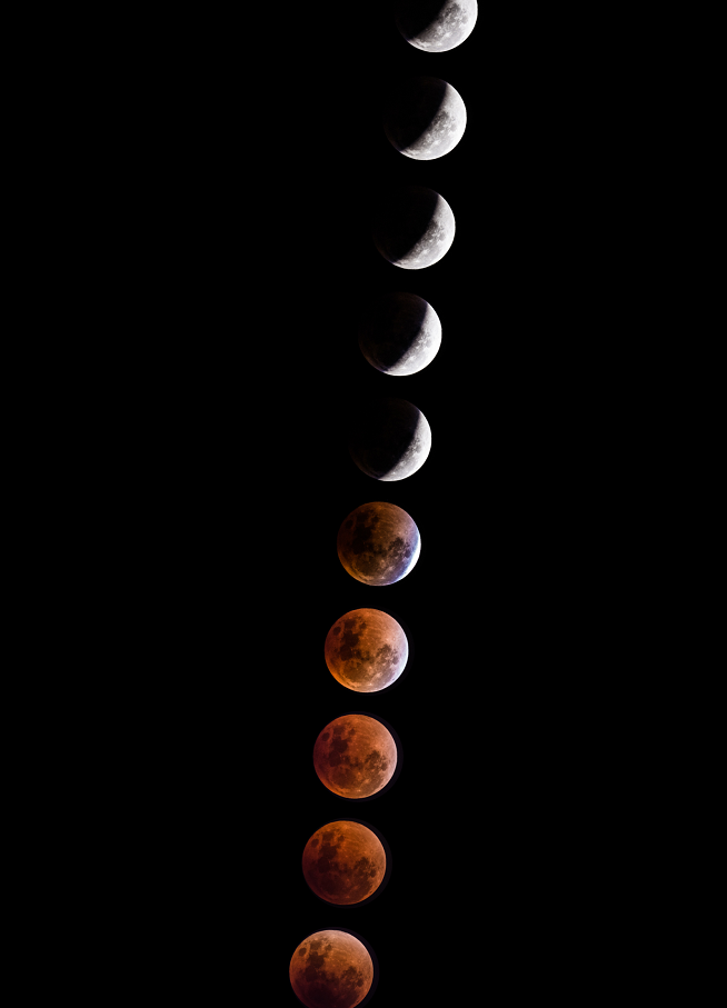 南京天文爱好者协会会员2018年1月31日拍摄的“月全食葫芦串”照片。(姚慷供图)