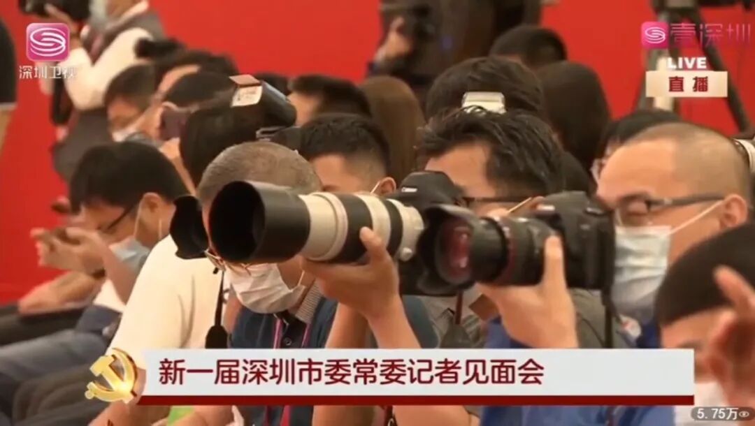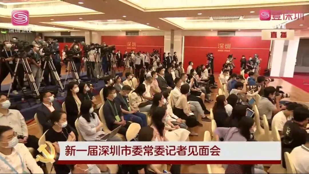 市民中心见面会现场气氛热烈。记者席早早地被媒体记者坐满,大家架起摄像机、照相机,测试设备、抢占位置,热切期待着深圳新一届市委常委首次集体公开亮相。