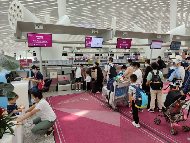针对疫情防控常态化下的假期出行,机场提醒广大旅客,避免前往中高风险地区,尽量选用自助值机、托运等设施,减少直接接触。出行途中要做好个人防护和清洁消毒,配合机场等交通场站的防疫政策要求。目前,旅客进入机场航站楼需接受体温检测和健康码查验,针对老幼人群,深圳机场也提供了识读身份证、填报纸质申报单、亲友代办或一人绑定多人防疫健康码等替代措施,在严格防疫要求的同时体现机场人文关怀。