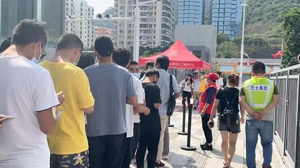 巴士集团的杨先生一边引导游客有序排队候车,一边拿着喇叭提醒游客带好口罩、提前准备好乘车二维码。他介绍,除了60辆循环发车的公交车,现场还有20辆备用公交车,在突发乘客滞留的情况下,随时加派车辆,尽力保障乘客出行。