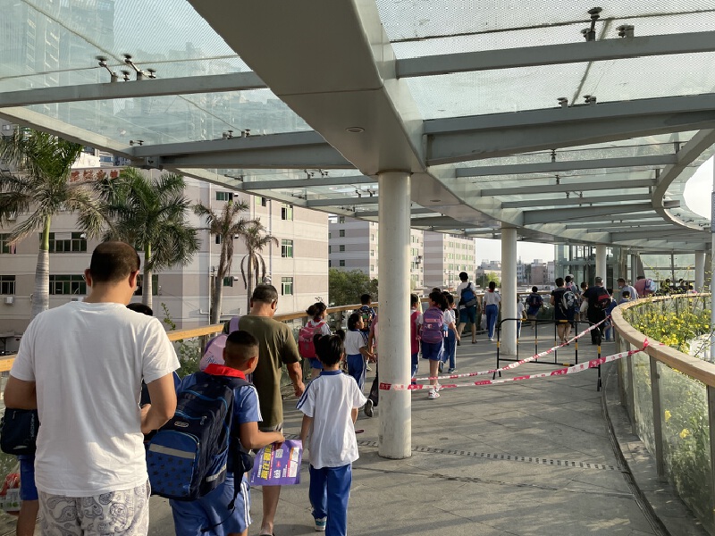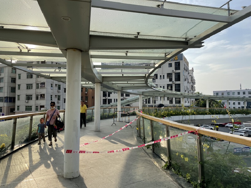 2019年8月,在周边居民的期待中,一座实现人车分离的塘尾转盘天桥被纳入建设日程。2020年10月,塘尾天桥虽投入使用但直至目前仍未验收,使用不足一年。