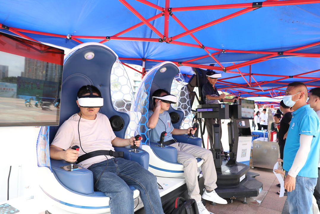 还设置了模拟灭火体验、体验心肺复苏和自然灾害VR体验等实操性强的项目,供群众体验、学习、参观。