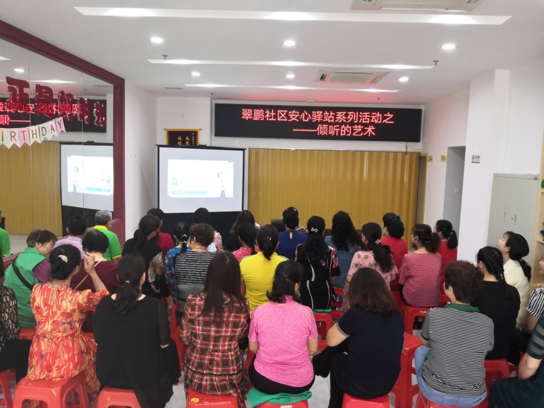 4月14日下午,翠鹏社区党群服务中心安心驿站播放安心视频《倾听的艺术》,现场吸引了30多位居民前来观看,把“安心”送到了老百姓家门口,为居民的心理健康保驾护航,构建强大的心理免疫屏障。