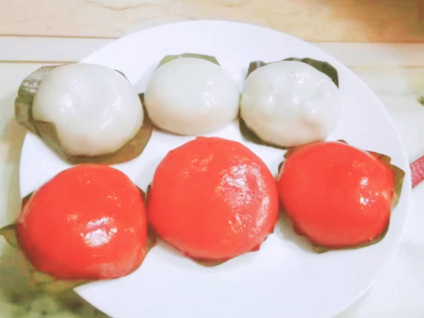 除了探索村落历史、红色记忆之外,本期活动还会探索、品尝光明本土特色美食--“红饿”。光明本地人会将田艾和糯米粉混合均匀,并以咸豆沙为馅做成团子,亦有红白两色。这种传统小吃俗称“茶果”,老人们又称其为“红饿”,是光明特有的清明时令小吃。
