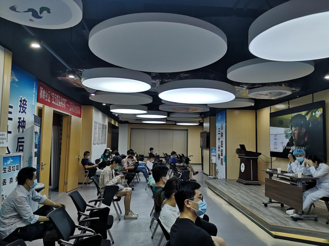 此前,为缓解留观等待期间居民的紧张情绪,优化居民疫苗接种的服务体验,莲花街道在留观等待区设置了小零食、书刊领取点方便居民自行领取,并不间断展映播放百场优秀红色电影,回顾中国共产党走过的辉煌历程。此次,为充分用好用活辖区红色资源,将党史课堂“搬”到接种点。莲花街道依托市博物馆“我为群众办实事——送展下基层”活动,通过疫苗接种后30分钟观察期,开展“我为群众办实事——打疫苗 看展览 学党史”活动。市民在接种完疫苗后,可以沉浸式观看深圳近代史、抗争史、革命史等展览,聆听市博物馆的“金牌讲解员”为大家生动讲述党史故事,以初心感悟共产党得民心的真谛。