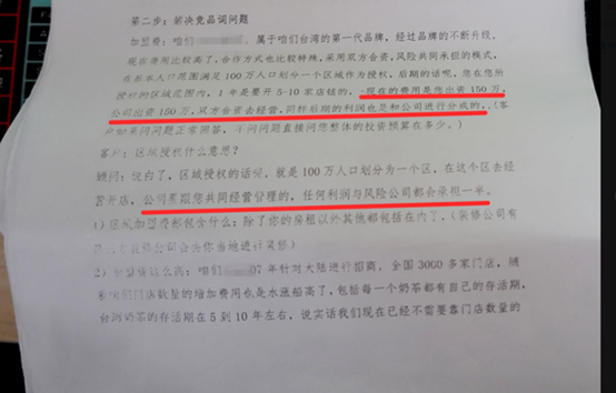 在公司,招商经理张某热情地接待了王先生,向其出示了奶茶品牌的招商授权书,同时展示了“茶芝兰”品牌奶茶的宣传视频。