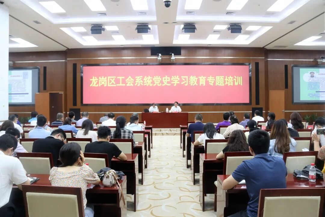 5月14日,龙岗区总工会在区智慧政务服务中心开展龙岗区工会系统“学史力行•千场百万龙工惠”党史学习专题培训研讨会。龙岗区总工会常务副主席林华兴及其他班子成员,全区各街道总工会主席、副主席,各行业(产业)工会主要负责人,全区职业化工会工作者及区总工会全体工作人员近150人参与了学习研讨。