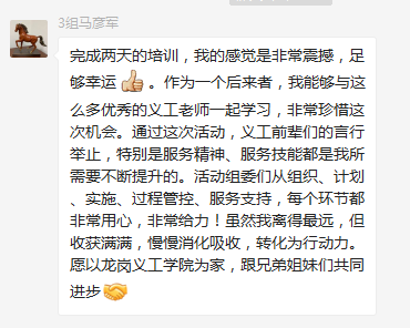 “大家为什么来参加讲师训练营?”训练营伊始,龙岗区义工学院理事长李永峰的提问直击人心。学员们争相回答,“我想通过培训和学习,将义工精神和理念更好的传递给更多的人”学员李新明说到。
