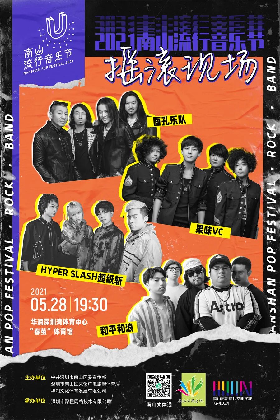 2021南山流行音乐节于5月28日将开启一场“摇滚乐队之夜”,集结原创音乐综艺《乐队的夏天》第一季和第二季的4支“青春、热血、正能量”乐队,囊括面孔乐队、果味VC、HYPER SLASH(超级斩)、和平和浪等超强阵容。