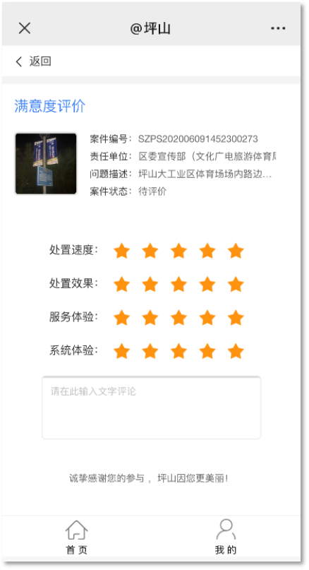 在上报事件“待评价”中,点击一个事件,即可进入至评价页面。