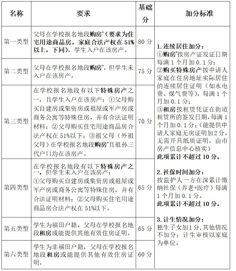 福田区义务教育阶段积分入学办法