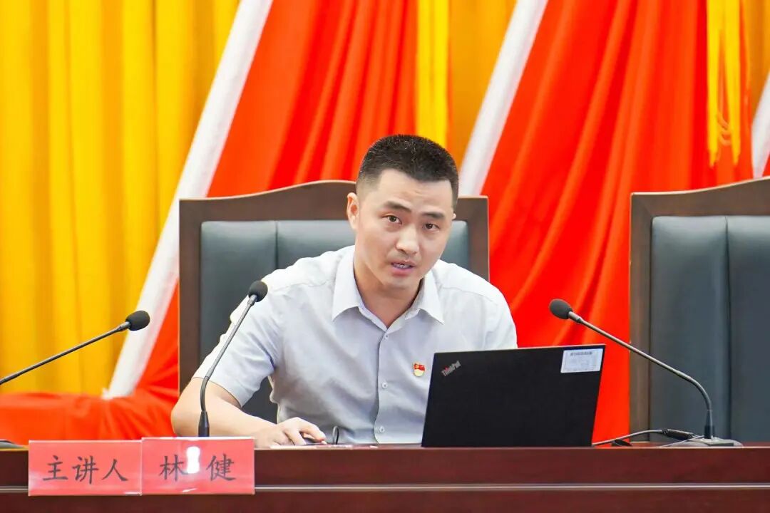 援桂干部林健做了题为《东西协作促脱贫,粤桂携手奔小康——深圳大鹏帮扶广西巴马》工作纪实的专题党课。