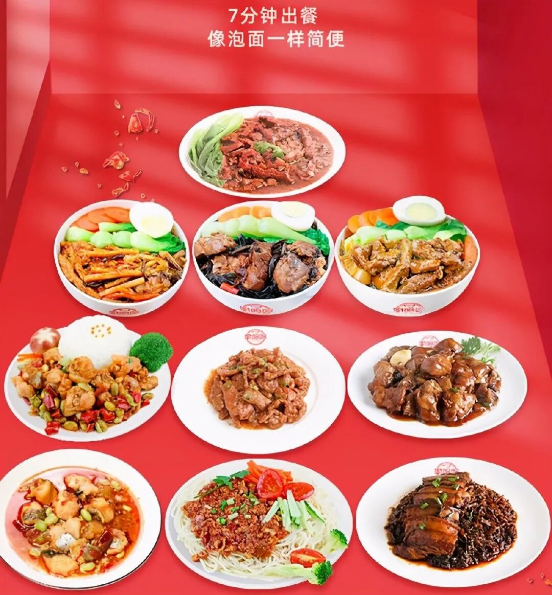 卤肉饭、香菇滑鸡、麻婆豆腐、三杯鸡、黄焖鸡,红烧牛肉,甚至老鸭粉丝汤、包子、馄饨,全部都有成熟的料理包制品。