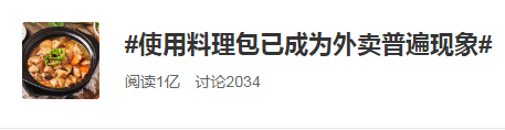 一时间,#使用料理包已成为外卖普遍现象#成为微博热搜话题。