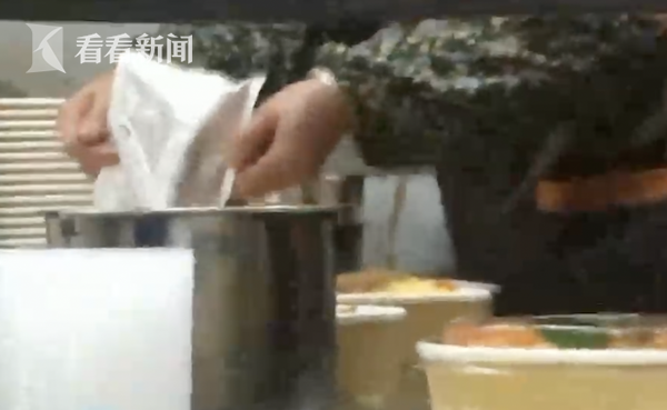 在被暗访的作坊里面,工作人员没有佩戴口罩和手套,徒手将西兰花摆在餐盒内。更加让人震惊的是,她们从微波炉中拿出一个个塑料袋打开,直接倒入饭盒内。