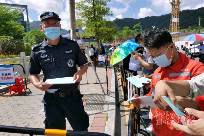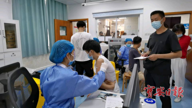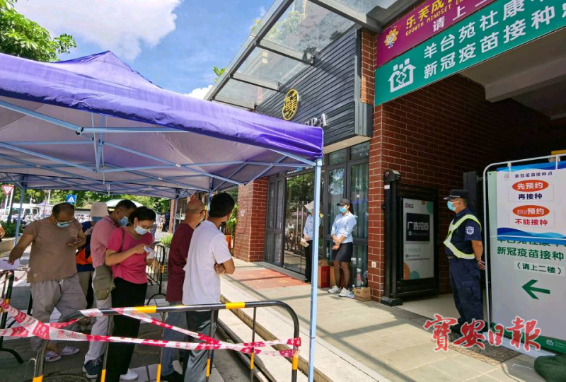 “你们打疫苗了吗?今天开始要预约啦。预约之后有秩序多了,不会有排队打不上的情况。”在宝安区石岩街道羊台苑社康中心附近的一家便利店里,店主李女士热情地向记者询问接种情况。这家社康中心是石岩8个接种点之一,今天可供应1200支疫苗。