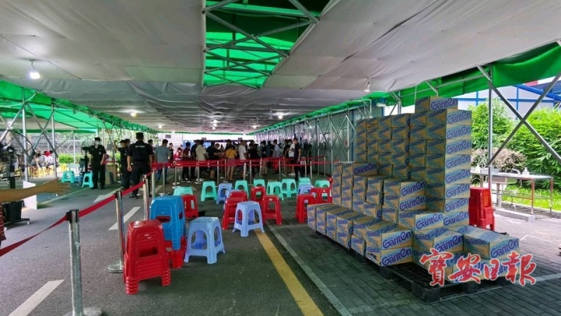 在接种点等候区,记者见到了数顶高大的帐篷,排队沿线摆放着喷洒水雾的大风扇,工作人员在向等候的市民派发矿泉水。等候区旁还设有临时公共卫生间。现场秩序井然,排队的市民都佩戴着口罩,在工作人员的引导下等候接种。