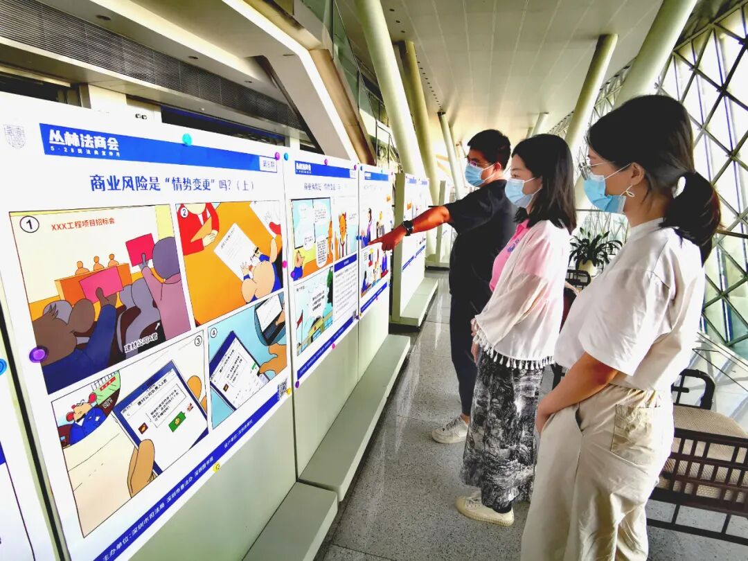 漫画展撷选《丛林法商会》普法漫画内容,以一群动物企业代表,在商会的日常工作生活折射人们在生活、职场、经营等场景中遇到的各种法律问题。