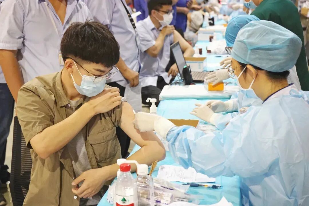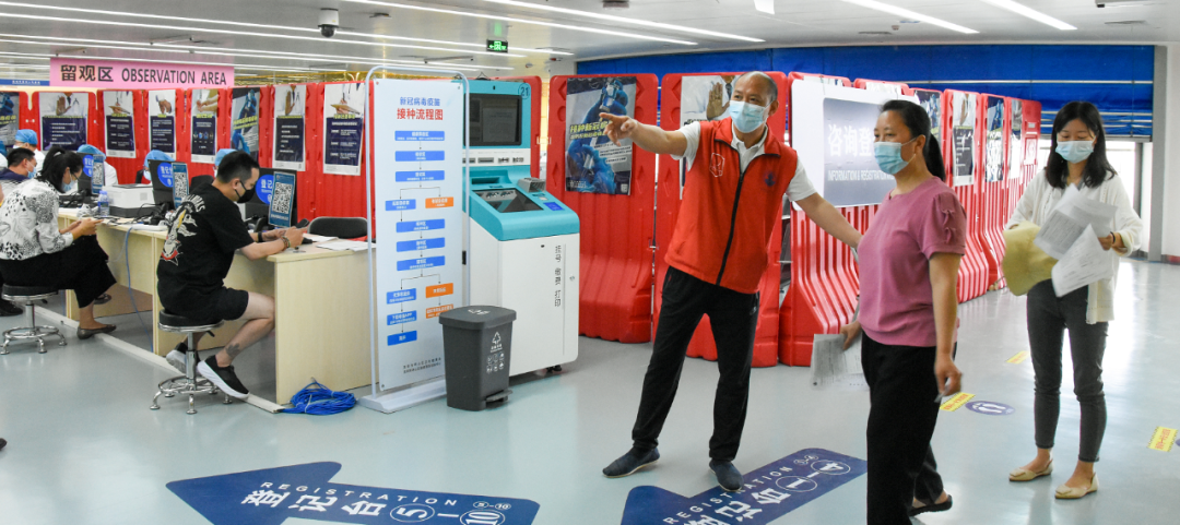 医务人员、社区工作者、义工朋友们等多方力量维护现场秩序,开展防疫科普,保障疫苗接种安全有序。