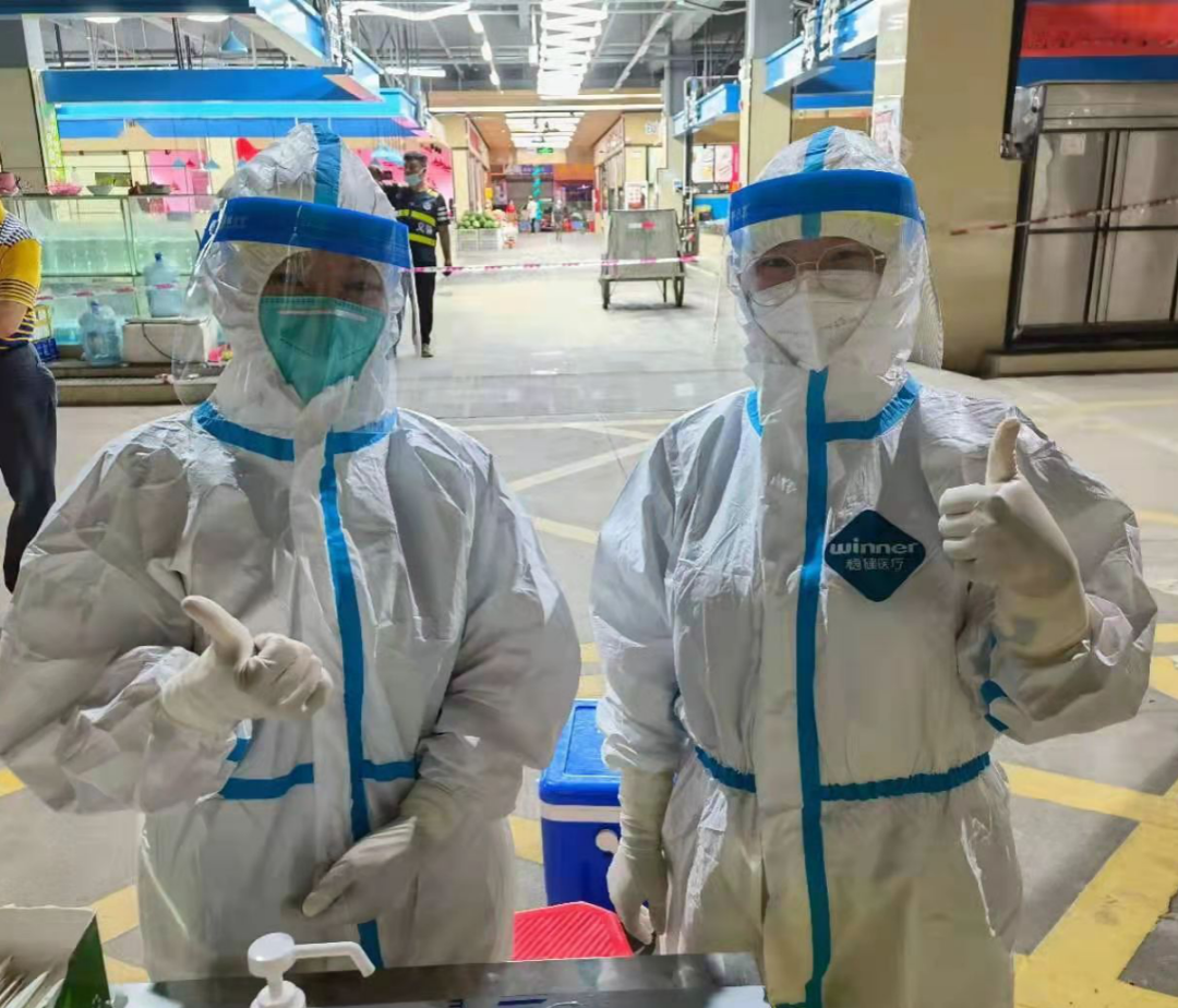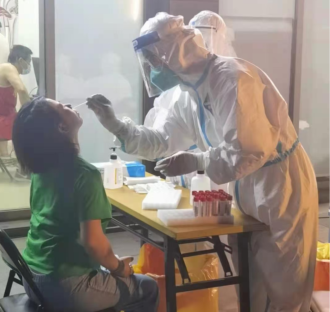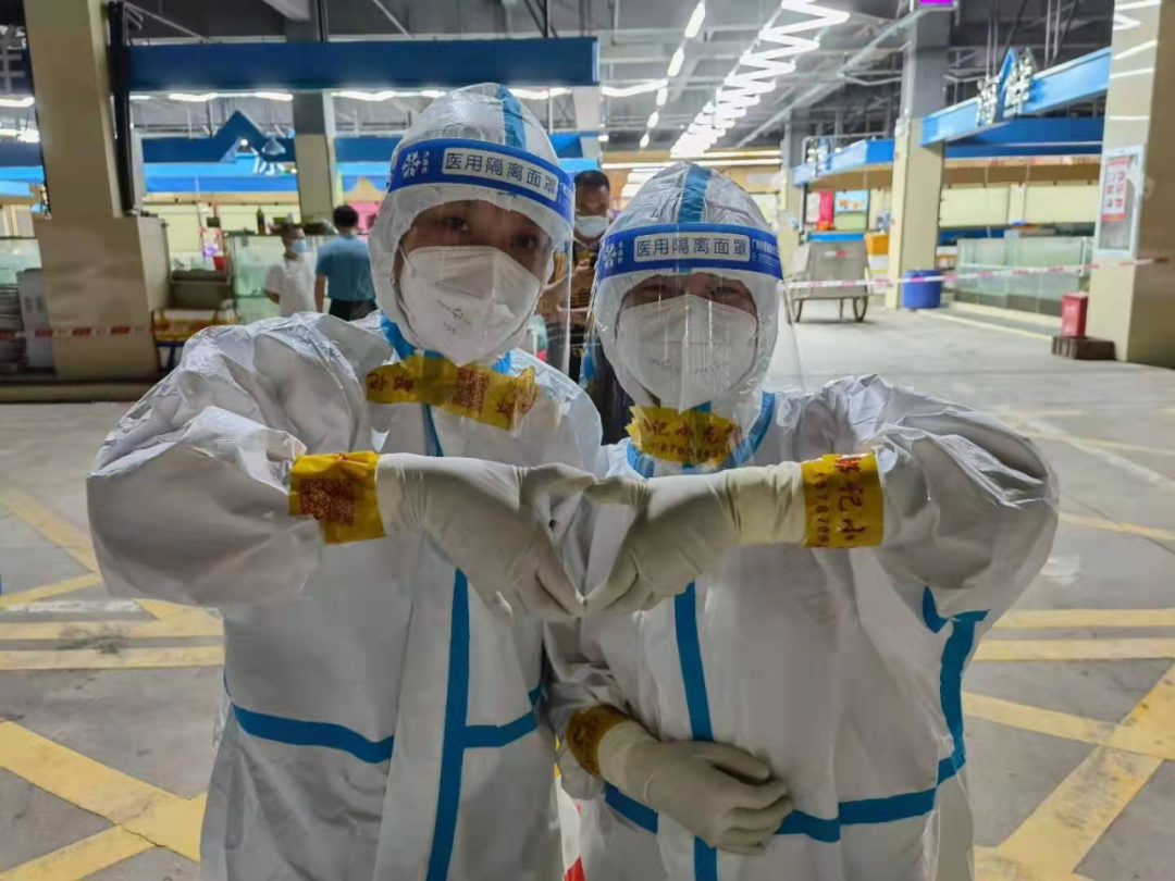炎热的夏天,医护人员穿着密不透风的防护服,头顶烈日,通宵达旦,无怨无悔奋战在核酸检测岗位。
