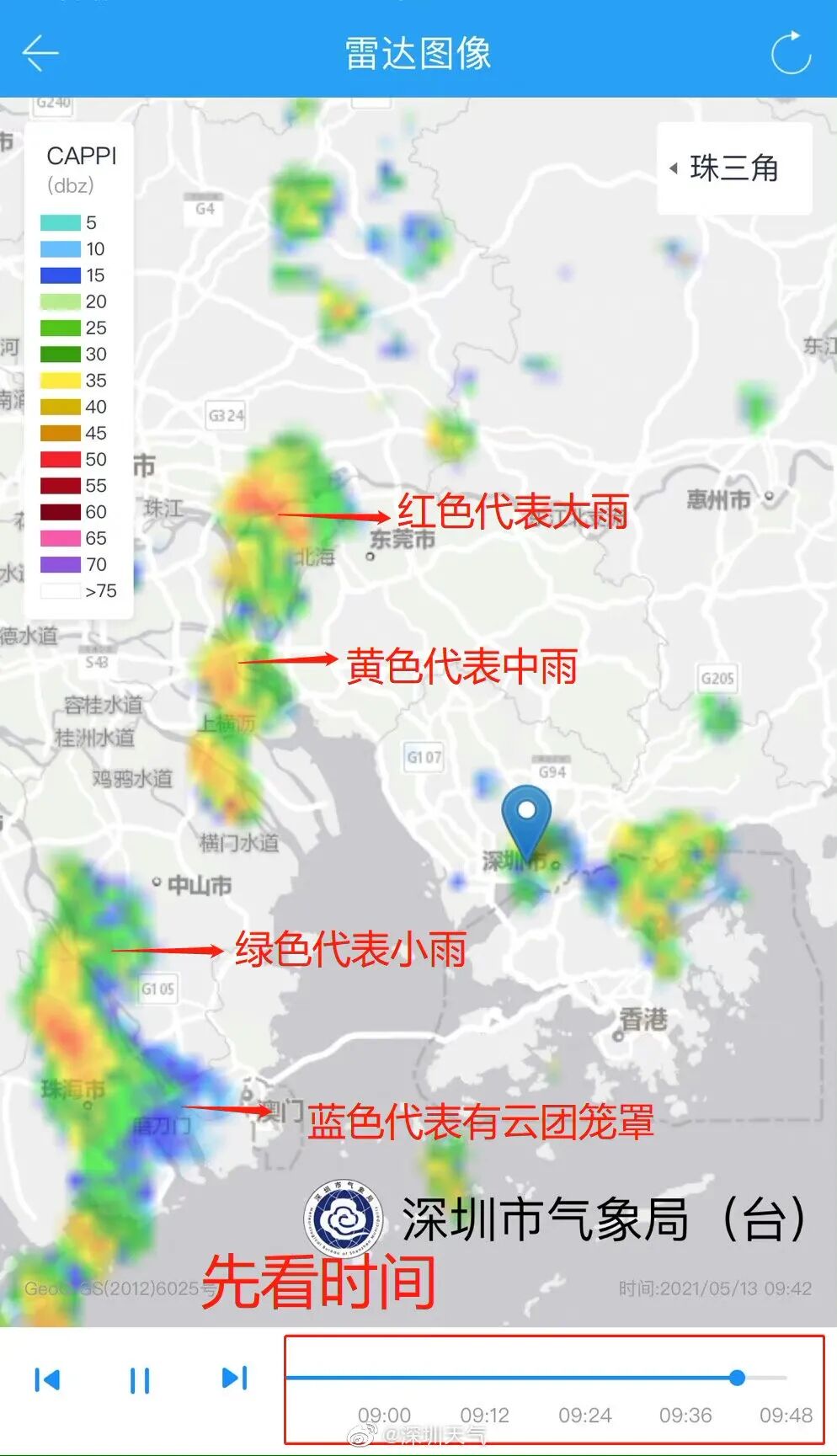 (在深圳天气app和公众号都能查看雷达回波图~)
