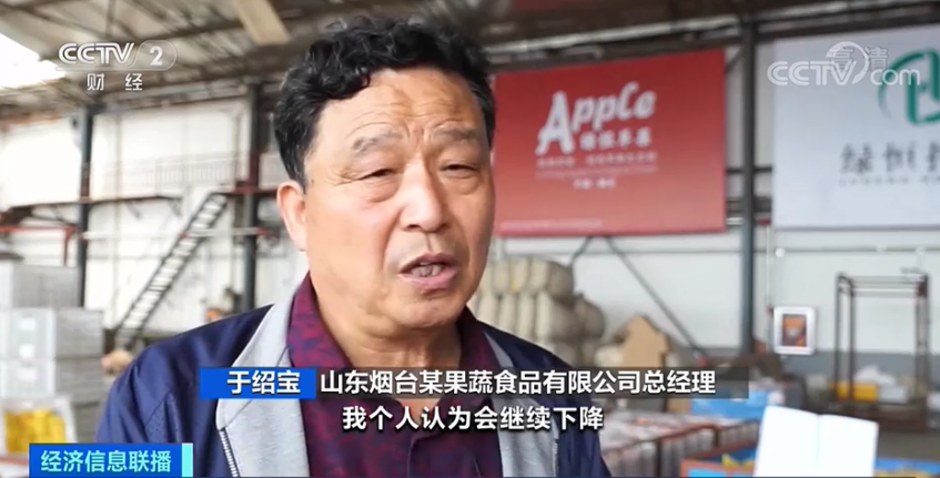 山东烟台某果蔬食品有限公司总经理 于绍宝:五月份是销售苹果的好时间。其他南方水果少,到了六月份特别端午节之前这是一个小高峰。过了端午节以后销售量,我个人认为会继续下降,量会降。