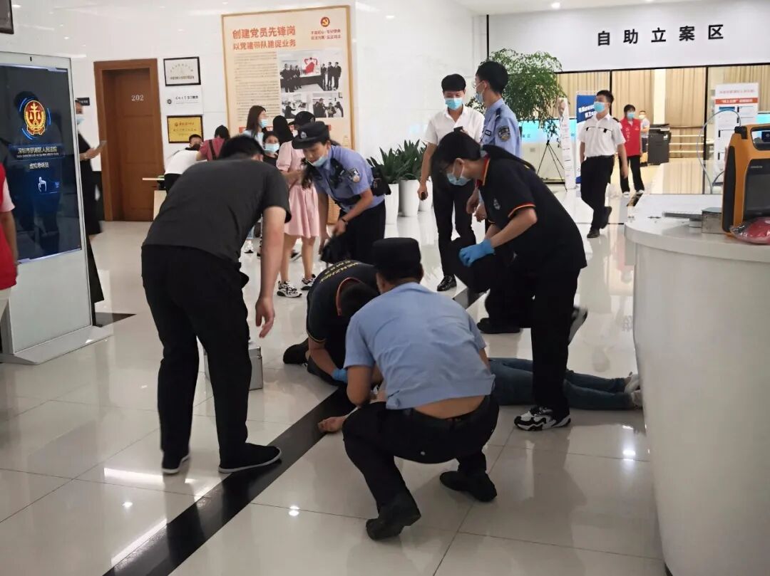 事发之时,罗湖法院诉讼服务大厅有十几位群众,窗口工作人员正在有条不紊地办理业务。突然“嘭”的一声闷响,大厅里的人都被吓了一跳。回过神来的办事群众发现,章某正躺在地上,脸色苍白,呈昏迷状态,现场顿时陷入骚乱。