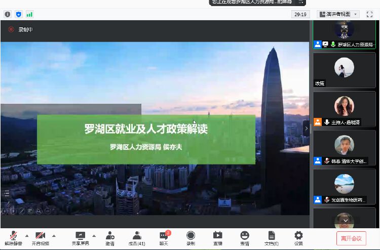 本次活动中,罗湖区人力资源局参会代表以深圳近十年人口增长为背景,围绕高校应届毕业生接收、罗湖区“菁英人才”、深圳市新引进人才租房和生活补贴、青年见习等政策,通过深入浅出的解析及互动答疑,为深圳市高校优质人才落户罗湖打下基础。