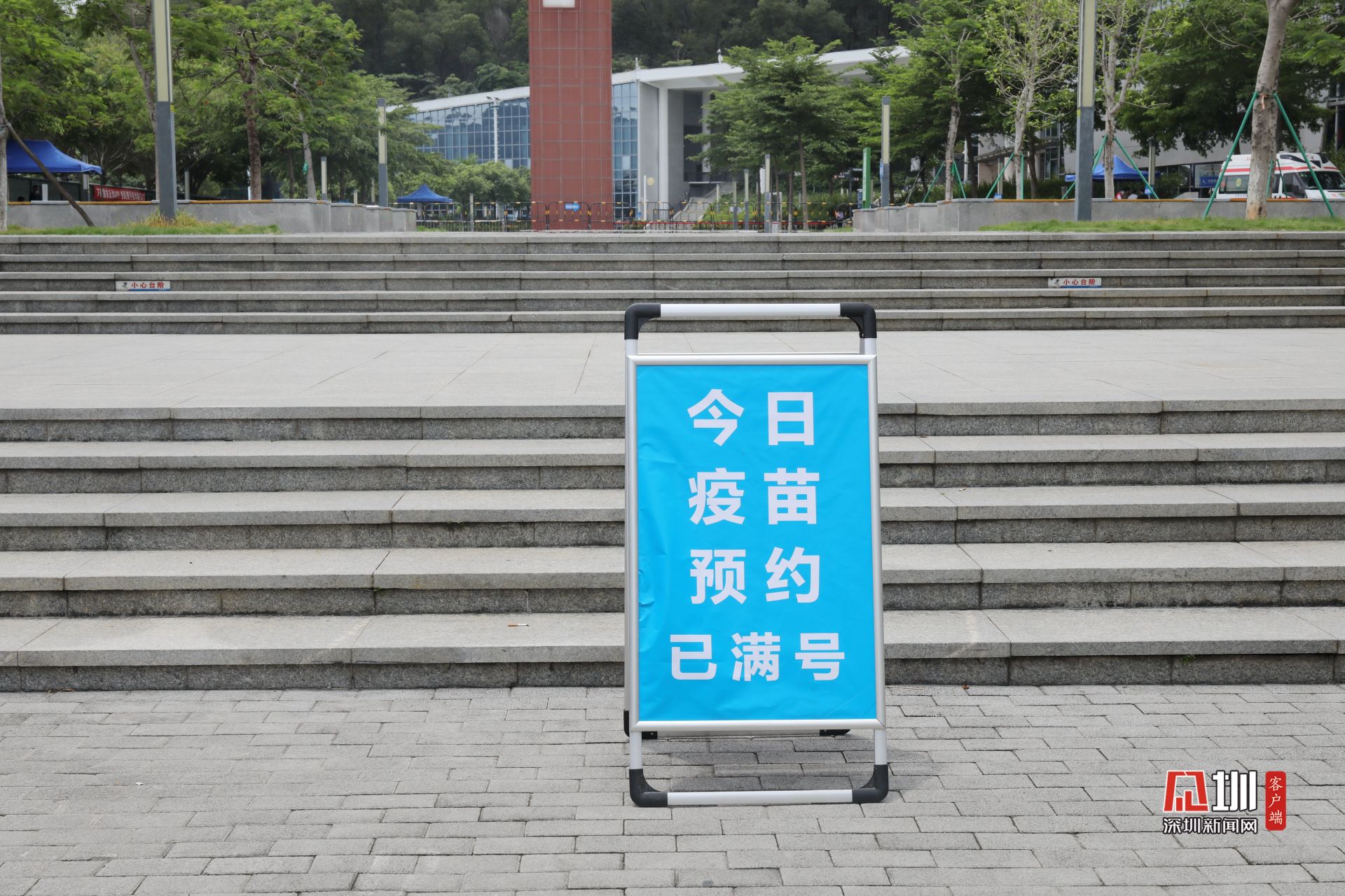 接种点入口处的显眼位置,摆放了“今日疫苗预约已满号”的指示牌。问询区内,不时有居民来询问接种疫苗的有关信息。“今天大概有2000支疫苗,主要面向团体预约,我们还安排了两台大巴车来回接送他们,方便大家有序接种疫苗。”区群众体育中心临时接种点工作人员麦国伟介绍,为了避免现场临时来排队的居民过多,他们会在社区预留一部分的号,并倡议不懂得线上预约的居民在社区登记,接到短信通知后再过来排队接种。