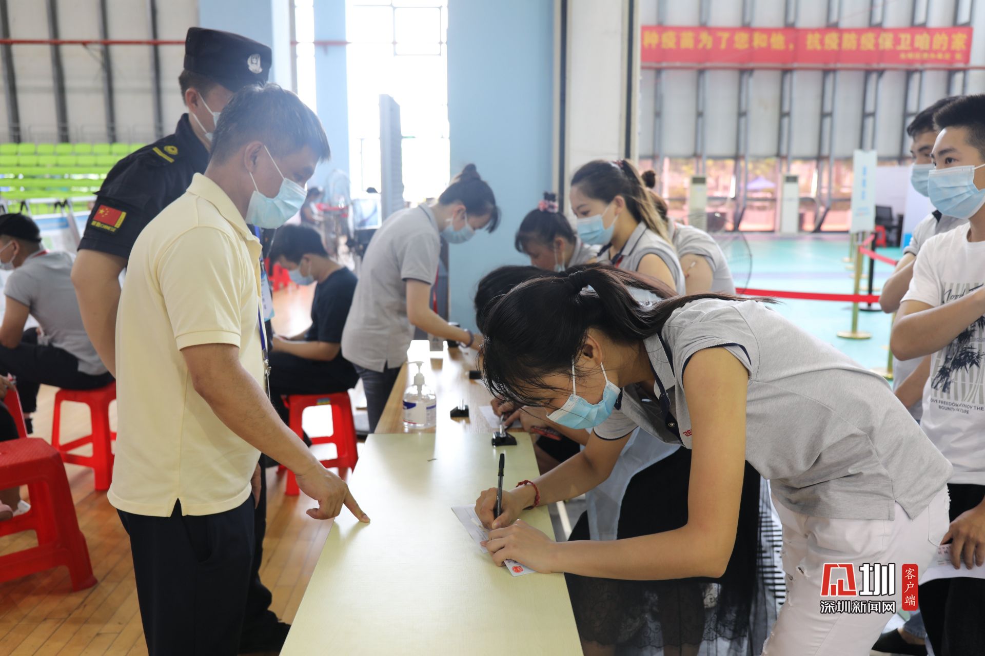 工作人员确认接种者信息。