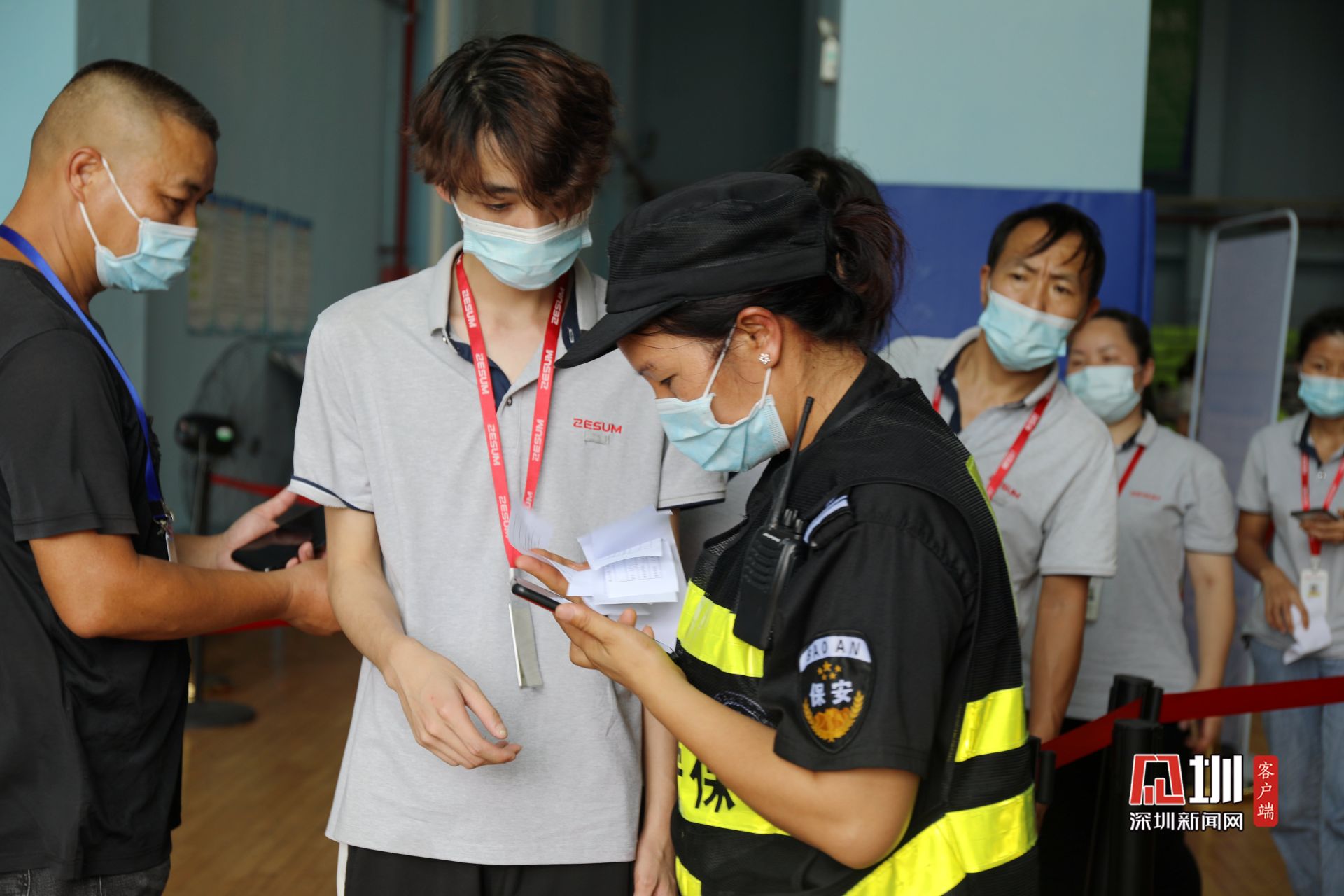 “红小二”指引居民有序排队。